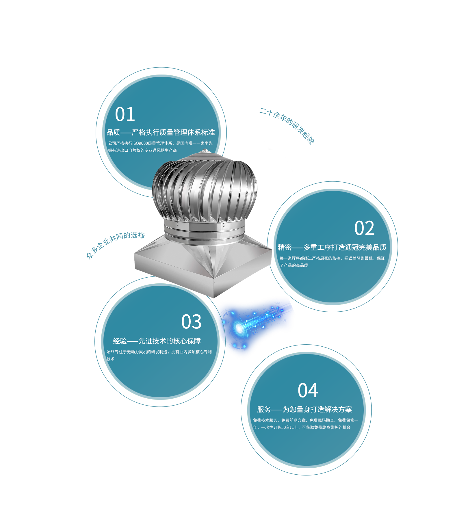 天長市通冠無動力風機有限公司,是集研發(fā)、生產、銷售于一體的,專業(yè)無動力風機生產廠家。公司坐落于205國道南京與揚州之間,位于省級高新經濟技術工業(yè)園,交通便利。“通冠”有著一支技術精湛、服務非凡的隊伍。所有一線技術工人技術熟練、質量意識強。公司嚴格執(zhí)行ISO9000質量管理體系,一貫貫徹“以質量為生命”、“以信譽為根本”、“以服務為基礎”的理念···[查看詳細]
